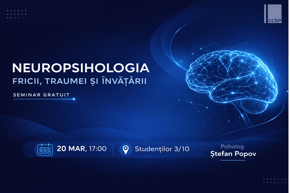 În acest seminar vom explora mecanismele neuropsihologice prin care creierul detectează amenințările, cum se formează fricile, cum apar reacțiile traumatice și cum învață creierul din experiențe. Vom discuta rolul structurilor precum amigdala, hipocampul și cortexul prefrontal în interpretarea situațiilor și în reglarea emoțiilor, dar și despre câteva mituri frecvente legate de traumă și reacțiile emoționale.
