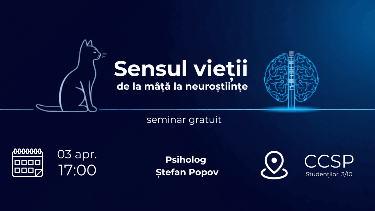 Seminarul propune o analiză a „sensului vieții” nu ca idee abstractă sau filosofică, ci ca rezultat al unor mecanisme psihologice și neurobiologice. Pornind de la emoții ca sisteme de semnalizare a relevanței și continuând cu rolul memoriei, valorilor și identității, seminarul urmărește cum creierul construiește treptat ceea ce numim „sens”. Sunt integrate perspective evoluționiste, cognitive și culturale, pentru a arăta că sensul nu este descoperit rațional, ci construit din interacțiunea dintre experiență, emoție și interpretare. De asemenea, seminarul abordează și depresia, explicând de ce în această stare apare senzația că „nimic nu contează” — nu ca o concluzie filozofică, ci ca un efect al modului în care funcționează creierul în acele momente.